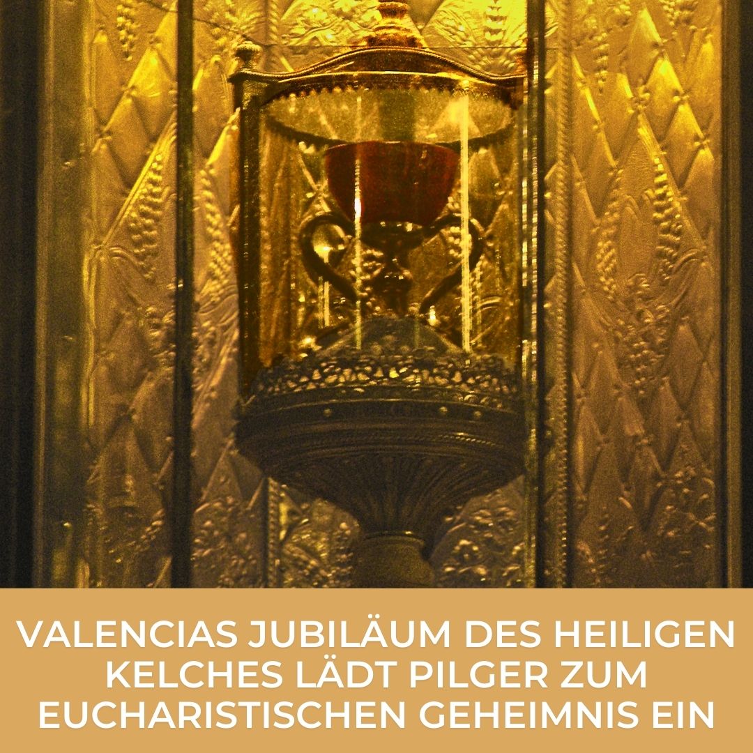 Text to Speech Button Blogbeitrag anhören Valencias Jubiläum des Heiligen Kelches lädt Pilger zum eucharistischen Geheimnis ein Bis Oktober 2026 wird die spanische Stadt Pilger aus aller Welt empfangen und ein neues Licht auf die kostbare Reliquie werfen, die dort seit dem 15. Jahrhundert aufbewahrt wird. Eine der kostbarsten Reliquien