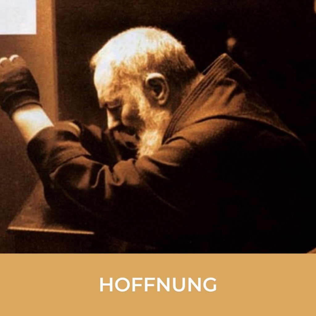Hoffnung Immer wenn Dinge schiefgehen, ist das erste das verloren geht, die Hoffnung. Sie ist leicht zerbrechlich, wie feines Glas, wir können sie so leicht verlieren. Der heilige Paulus sagt, dass es für diejenigen, die Christus nachfolgen, Jemanden gibt, der unsere Hoffnung schützt und rettet: den Vater Jesu; wenn wir auf Gott hoffen, ist unsere Hoffnung sicher. Sie ist weit jenseits aller Schäden, die uns durch menschliche Katastrophen oder Naturereignisse zugefügt werden können. Gott hält unsere Hoffnung wirklich fest und bewahrt sie. Ein Mann, der eine sehr zynische Haltung gegenüber dem Glauben entwickelt hatte, gab immer Gott die Schuld, wenn etwas in seinem Leben schiefging. Er besuchte zwar weiterhin die Messe, ging aber selten zur Beichte oder zur Heiligen Kommunion. Mit der Zeit begann seine Gesundheit zu versagen, zu gleicher Zeit wuchsen die Probleme in seinem Familienleben und wurden nahezu überwältigend. Eines Sonntags betrat er die Kirche und setzte sich in die allerletzte Bank. An diesem Tag beschloss er, dass er mit der katholischen Kirche für immer fertig sei. Er betete zu Gott und sagte: „Ich gehöre nicht hierher. Du hasst mich und Du hilfst nur deinen Lieblingen.“ Nach diesem Entschluss warf er zuhause alle Heiligenbilder, Medaillen und Rosenkränze weg. Keinem seiner Familienmitglieder erlaubte er, das Wort „Gott“ noch auszusprechen. Diese Situation dauerte siebeneinhalb Jahre. Der Mann lernte eine Frau kennen, die eine große Verehrung für Pater Pio hatte. Als er einmal mit ihr über einige seiner Probleme sprach, sagte sie ihm, dass sie glaube, dass Pater Pio ihm helfen könne. „Ich werde einen Brief an Pater Pio schreiben und ihn bitten, für dich zu beten“, sagte sie. Sie ermutigte den Mann ebenfalls, Pater Pio zu schreiben, und er stimmte zu, obwohl er überzeugt war, dass es gar nichts nützen würde. Eigentlich wollte er mehr als alles andere der Frau beweisen, dass Pater Pio ihm nicht helfen würde. Er war sich sicher, dass auch Pater Pio nur seinen Lieblingen half. Er schrieb ihm, und in seinem Brief bat er Pater Pio, für eine Verbesserung seiner finanziellen Situation zu beten und für einen festeren Glauben seiner Familienmitglieder, die – genau wie er – von der Kirche abgefallen waren. Er erhielt eine Antwort per Post. In dem Brief stand, dass Pater Pio seinen Segen sende und für ihn bete. Der Mann warf den Brief weg. Ein Tag nach dem anderen verging, aber im Leben des Mannes verbesserte sich nichts. Er fühlte, dass seine Lasten zu groß und zu zahlreich waren, um sie noch länger zu tragen. Es schien, als sei er auf dem Weg zu einem völligen Nervenzusammenbruch. Sein Brief an Pater Pio war Ende März 1968 abgeschickt worden. Im April bemerkte der Mann plötzlich einen reichen und angenehmen Duft von Tabak, etwas, das viele Menschen erfuhren, die einen Segen von Pater Pio empfingen. In diesem Moment musste der Mann an Pater Pio denken; er war gerührt und begann zu weinen – es waren aber keine Tränen der Traurigkeit, sondern der Freude. Am darauffolgenden Sonntag verspürte er den Wunsch, zur Messe zu gehen. Freudig rief er seine Familienmitglieder an und erzählte ihnen, was geschehen war. Diese dachten, er habe nun endgültig einen Zusammenbruch. Er ging zur Messe und nicht lange danach legte er eine aufrichtige Beichte ab. Der Mann kaufte mehrere Biografien über Pater Pio und las sie von Anfang bis Ende durch, weil er mehr über ihn erfahren wollte. Das, was er aus den Büchern lernte, beeindruckte ihn so sehr, dass er ganz zu seinem katholischen Glaubensleben zurückkehrte. Fünf Monate später starb Pater Pio. Mit der Zeit wurde sich der Mann der vielen Segnungen bewusst, die seine Familie und sogar seine weitere Verwandtschaft durch die Fürsprache Pater Pios erhielten. Einer seiner Brüder, der mit Alkoholabhängigkeit zu kämpfen hatte, konnte endlich mit dem Trinken aufhören. Außerdem kehrten zwei Familienmitglieder zur Ausübung ihres Glaubens zurück. „Jetzt bin ich mit Gott im Frieden, der so gut zu mir war, nachdem ich Ihn so sehr verletzt hatte“, sagte der Mann. Heiliger Pater Pio, bitte auch für uns in unseren schweren Zeiten!